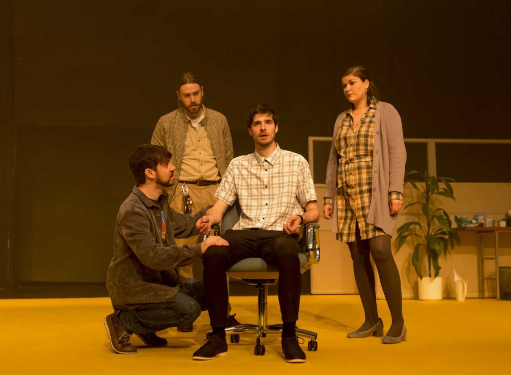 Poisson Glissant est un spectacle à tableaux de comédie existentielle, où le public sera témoin d’une multitudes de situations tirées de la vie professionnelle, personnelle ou fantasmée des employé·e·s d’une entreprise, où l’éruption de l’absurde sera moteur de théâtralité et de réflexion.