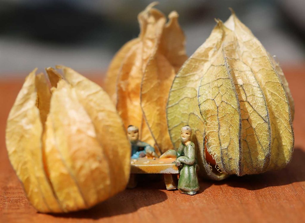 Dans Les contes zen du potager, les héros sont des moines ou des samouraïs; un légume, un fruit ou une petite douceur leur sert de corps, révélant leur caractère. Composé tel un recueil de courtes formes et de haïkus, chaque intervention des manipulateurs se veut aussi assurée et minimale que le geste du calligraphe ou du cuisinier japonais, aussi rituelle que l’art du thé, aussi amusante et inventive que le permet l’art de l’objet!
