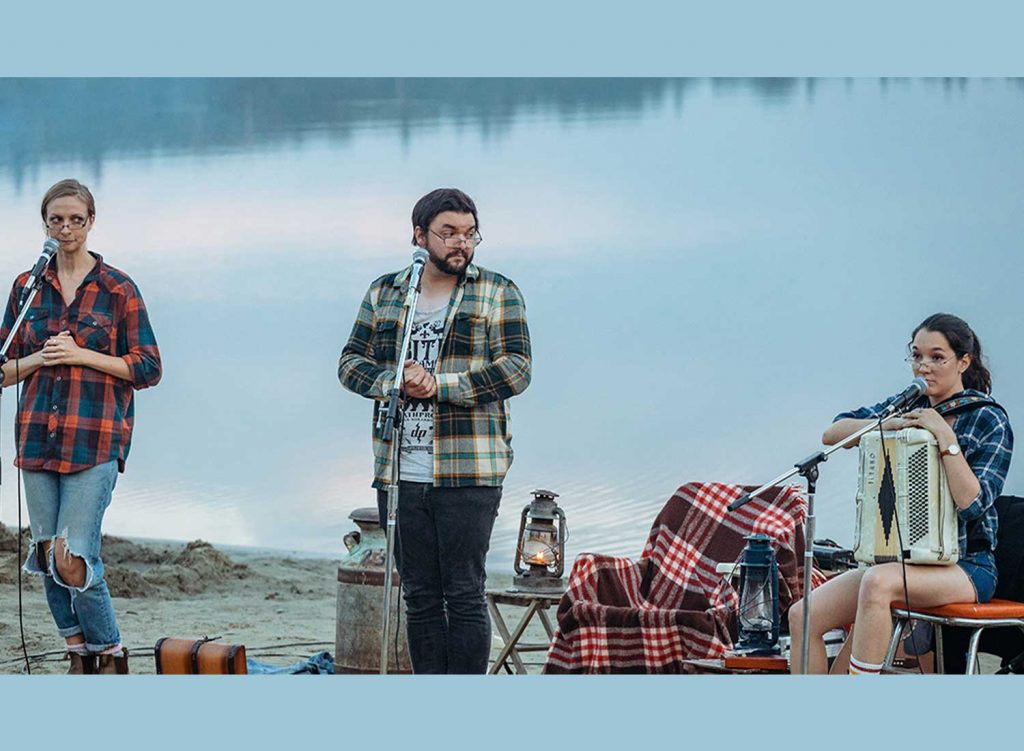 QUELS CONTES ÉMERGENT DES TUNNELS DE MINES, DES FORÊTS ÉPINEUSES OU DU LAC TÉMISCAMINGUE? Viens t’asseoir. Prends le temps d’arriver, de t’installer. Fais comme chez toi. Nous autres, on t’accueille avec de la musique, des sourires, pis un brin de jasette. Fais rien. On te dorlote à soir avec nos chansons pis nos histoires. Des contes qu’on a ramené de chez nous, en haut du 49e parallèle; des légendes qui traînaient dans la cours arrière. On leur fait faire un tour dans la métropole le temps d’une bière. Profites-en, sont pas souvent dans le coin.