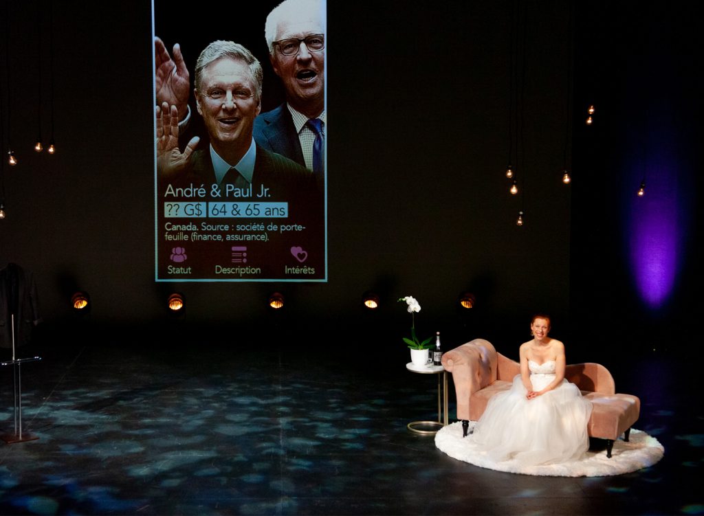 Ils étaient 470 en 2000, puis 1011 en 2010. Ils sont maintenant 2755 sur 7 milliards d’êtres humains. Ils possèdent ensemble 7 fois le capital qui permettrait de mettre fin à la pauvreté dans le monde : ils sont les milliardaires d’aujourd’hui. Suite au succès des représentations montréalaises au printemps dernier, Michelle Parent et sa compagnie Pirata Théâtre reviennent avec une version revue et actualisée du one-woman-show économique et politique COMMENT ÉPOUSER UN MILLIARDAIRE, en codiffusion avec le Théâtre Aux Écuries. Ce monologue grinçant sur les riches et sur les pauvres, se base sur le classement annuel Forbes des milliardaires mondiaux et constate, de manière pédagogique et humoristique, la situation désespérante de notre monde.