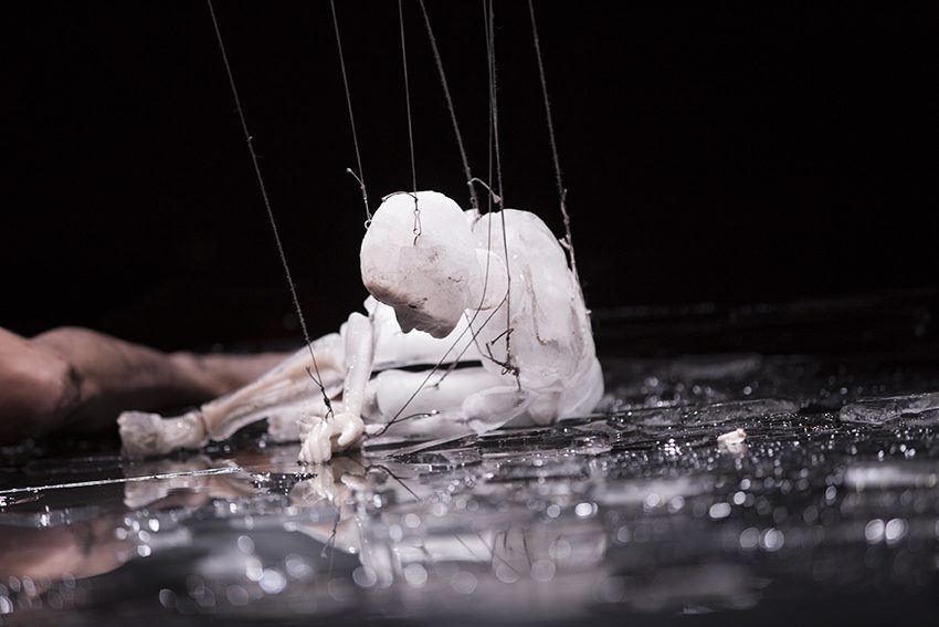 En équilibre, ensemble avec les spectateurs/voyageurs, nous marchons vers ce territoire de l’entre-deux, à la frontière entre le visible et l’invisible, l’animé et l’inanimé, l’ombre et la lumière.