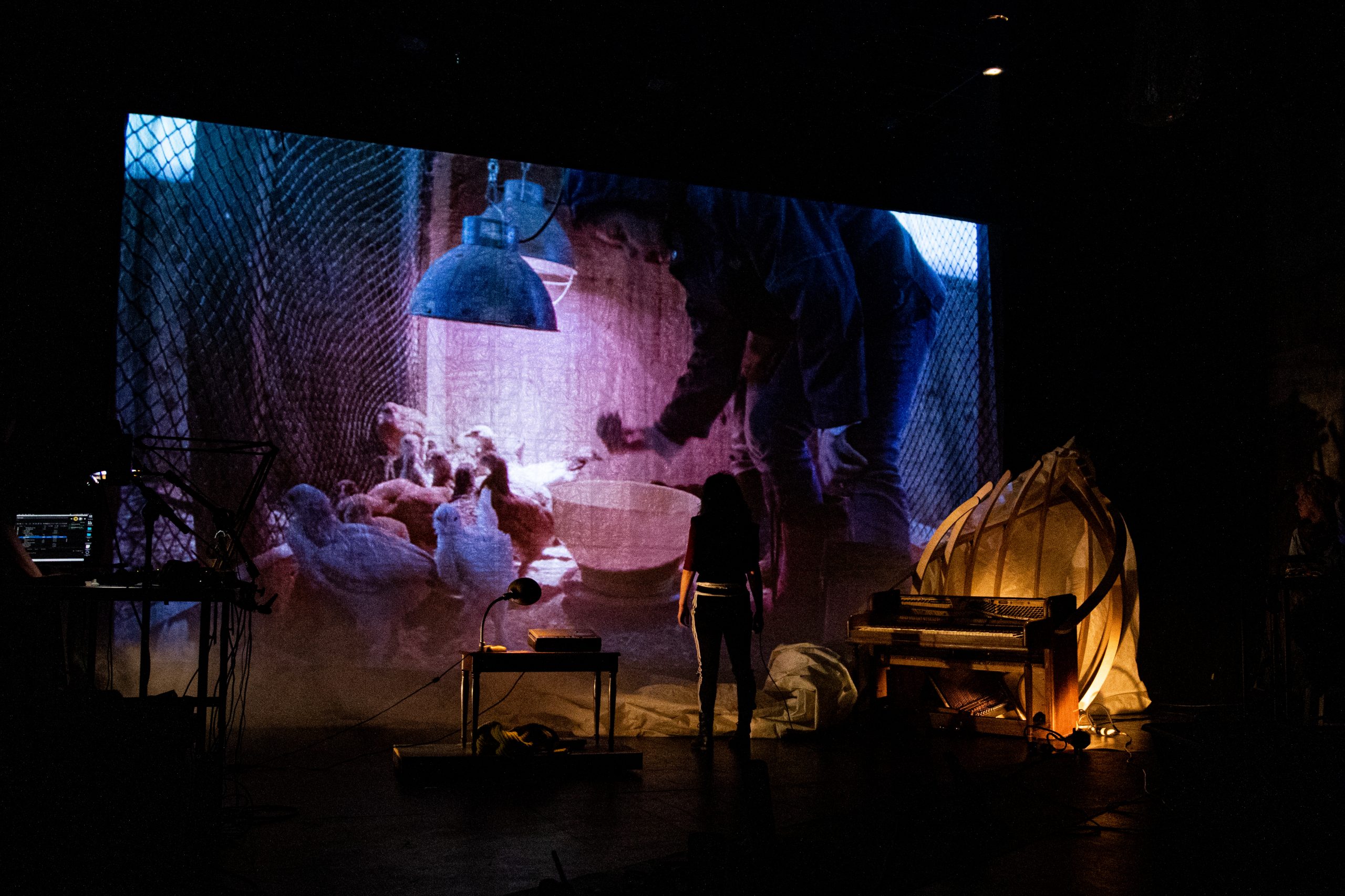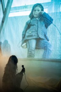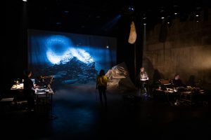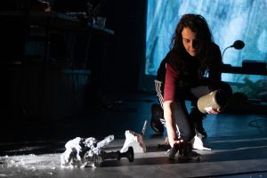 Expérience immersive et conviviale, happening interdisciplinaire décomplexé, Dérive de nuit s’offre comme une fable philosophique à la narration libre et dépouillée. Sur le plateau, les sublimes images de la Côte-Nord et de la Basse-Côte-Nord, l’ingénieux dispositif vidéo permettant de graffiter les paysages, les compositions électroacoustiques entremêlant sons concrets et ambiances planantes, le poumon de glace qui fond inéluctablement et l’épave-piano qui attend d’être découverte… multiplient les portes d’entrée vers le récit d’une femme perdue qui ne sait plus quoi faire de ses dix doigts. Performée par l’équipe de conception qui emprunte moult détours autobiographiques, cette traversée sonore, cinématographique, plastique et performative aborde les vertiges du dépaysement et de la quête de sens par la dérive des matériaux artistiques eux-mêmes.